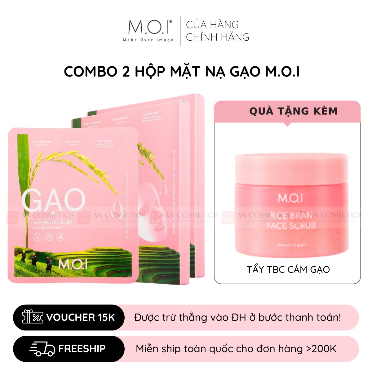 (TẶNG KÈM QUÀ) Combo 2 Hộp Mặt Nạ Gạo Tinh Khiết M.O.I Hydrogel Phiên Bản Cải Tiến 2025 (Hộp 3 miếng)