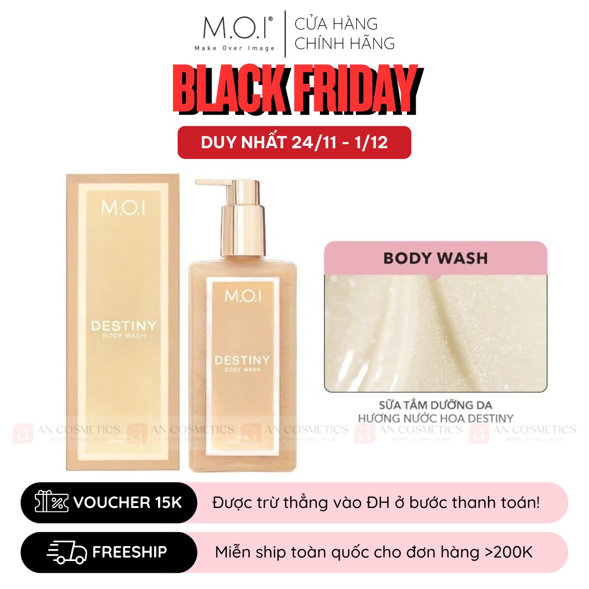 (BLACK FRIDAY 199K) Sữa Tắm Dưỡng Da M.O.I Hương Hoa Destiny Body Wash 250ml (tổng đơn >799K tặng thêm quà)
